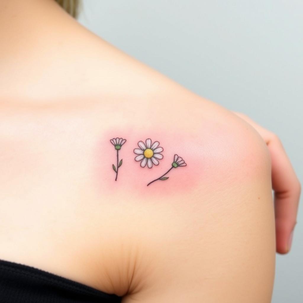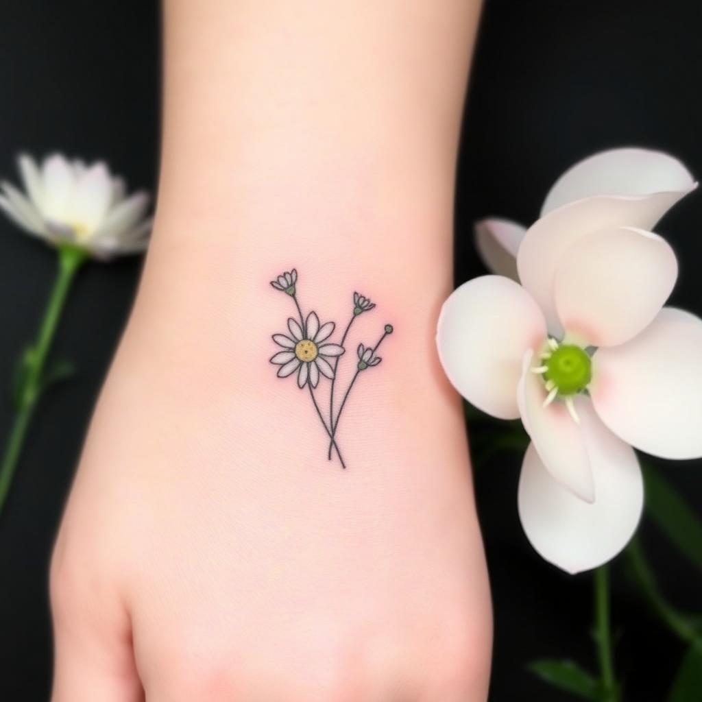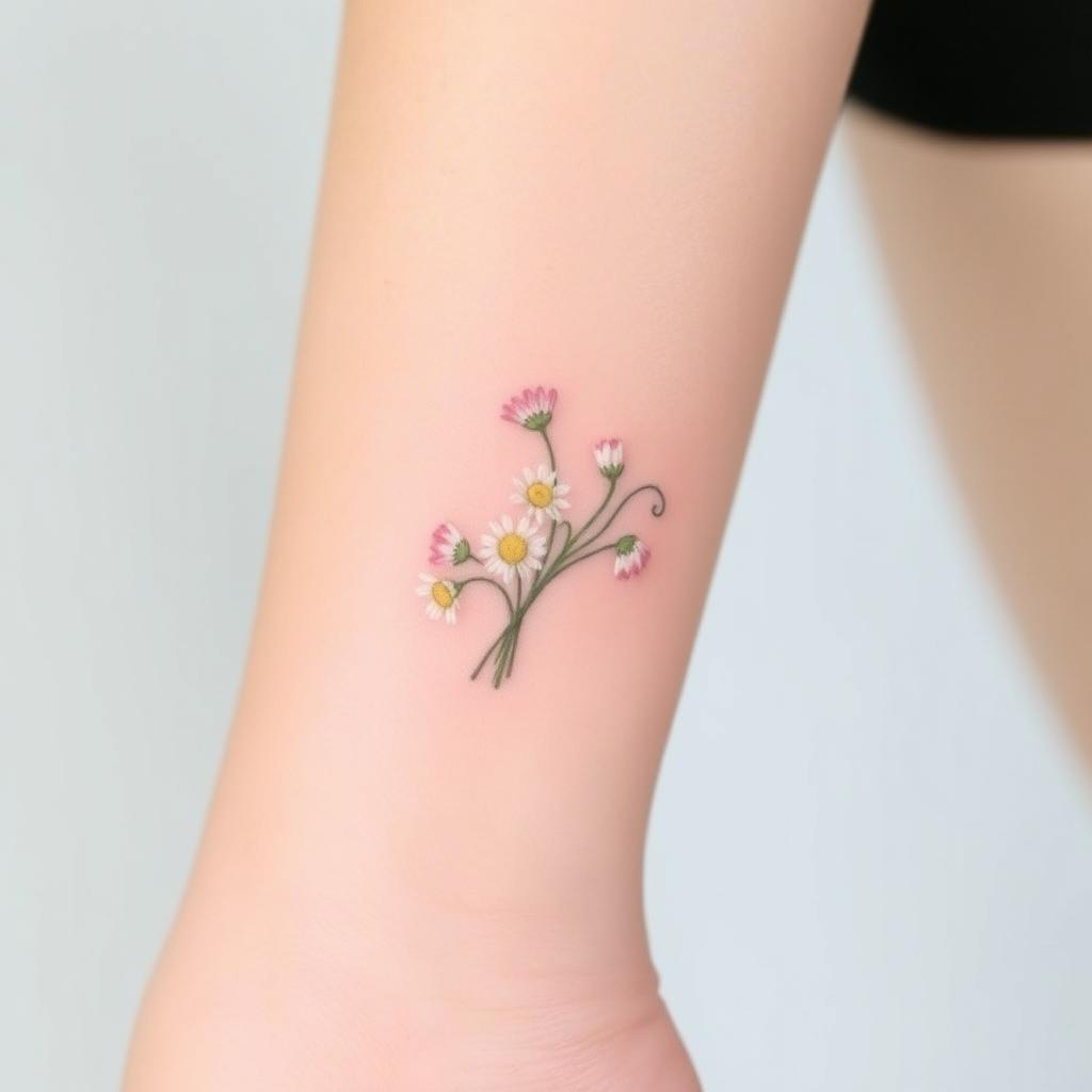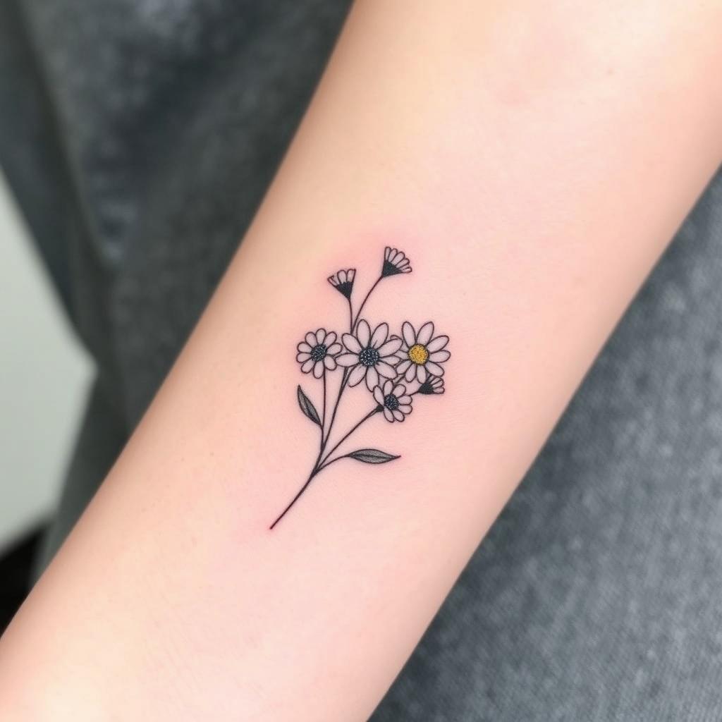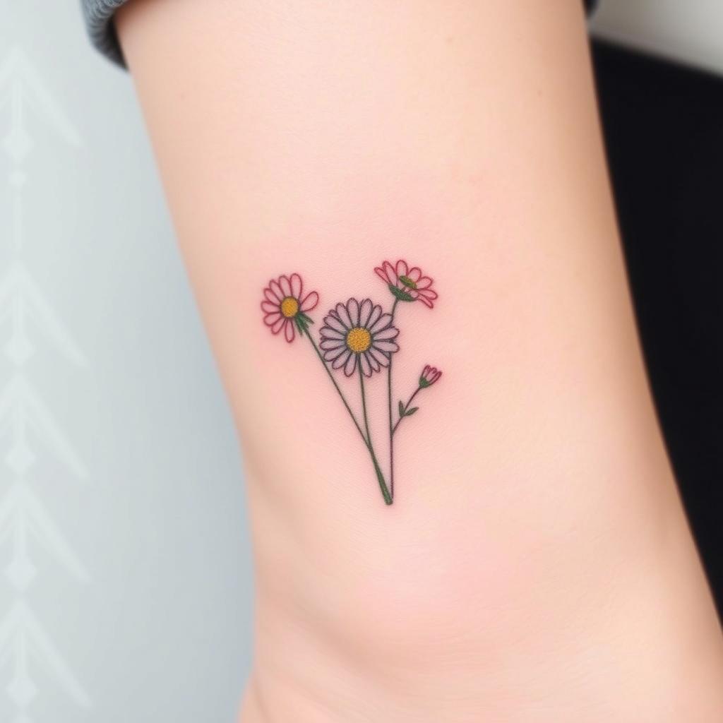 Small groups of tiny daisies are another simple tattoo idea. They fit well on small parts of your body, giving a soft, playful look. They celebrate the April birth flower’s natural beauty.