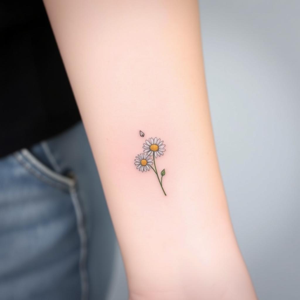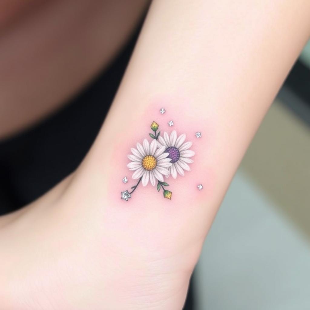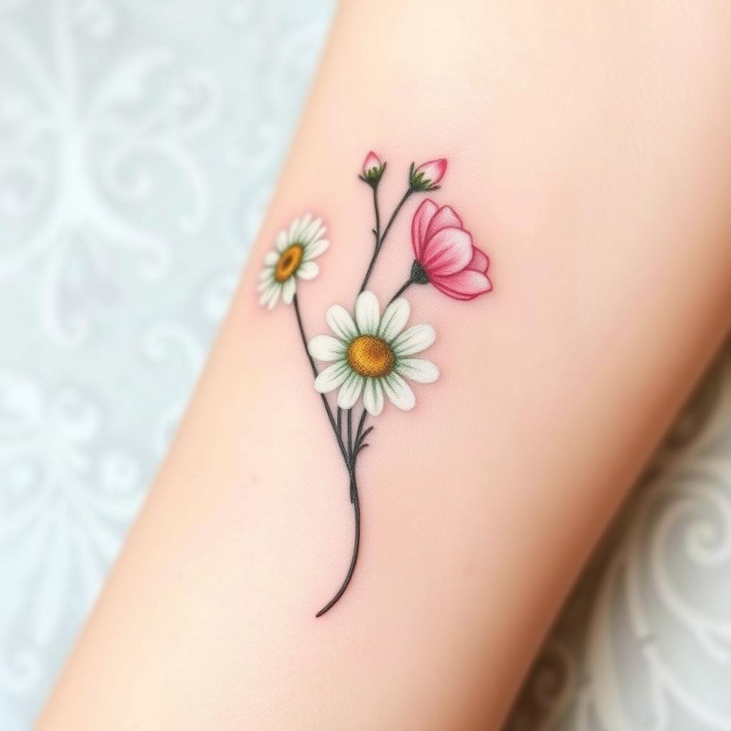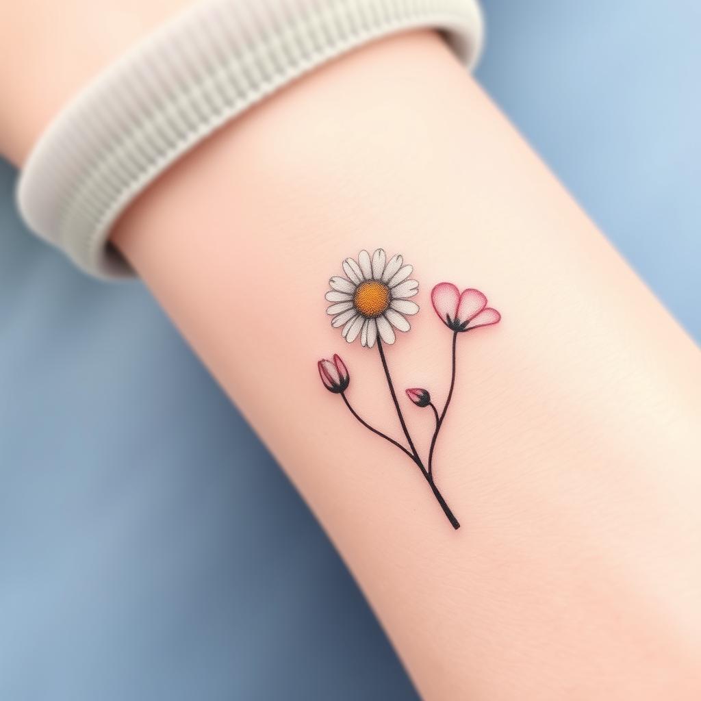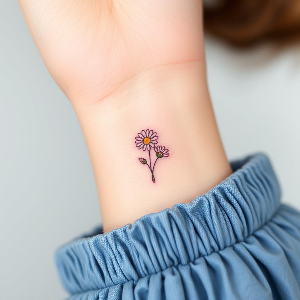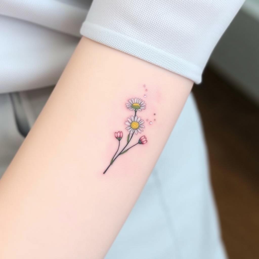 Small groups of tiny daisies are another simple tattoo idea. They fit well on small parts of your body, giving a soft, playful look. They celebrate the April birth flower’s natural beauty.