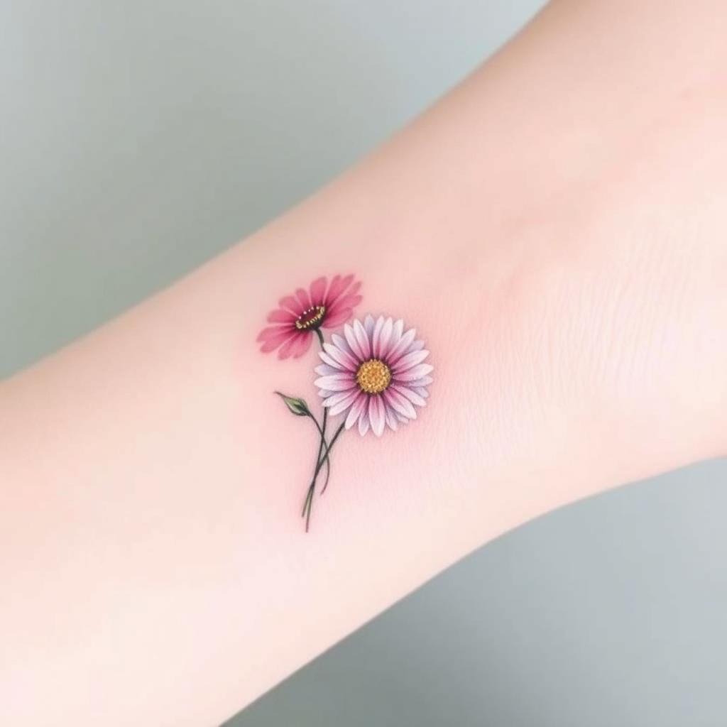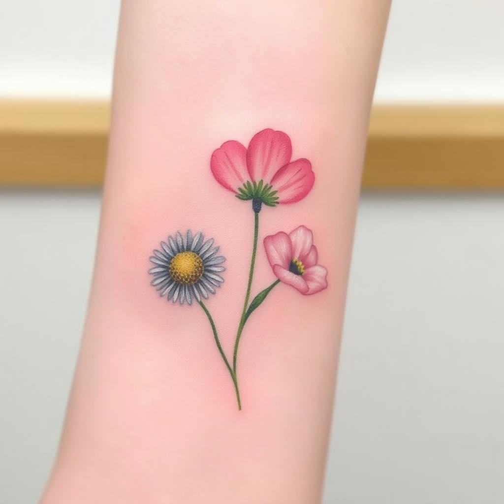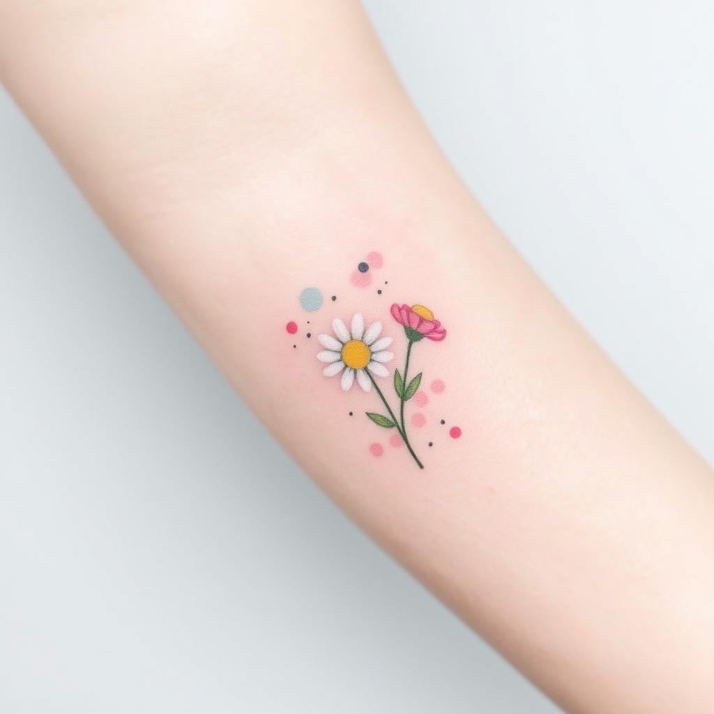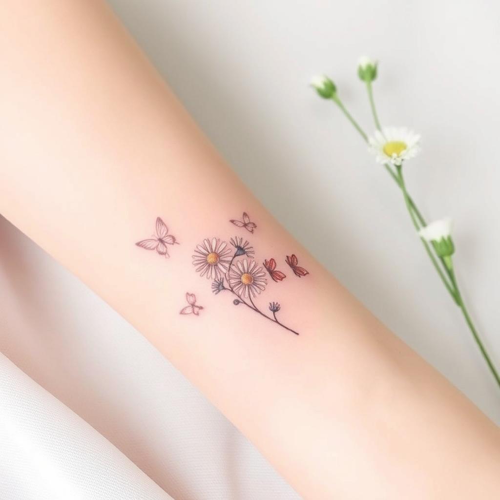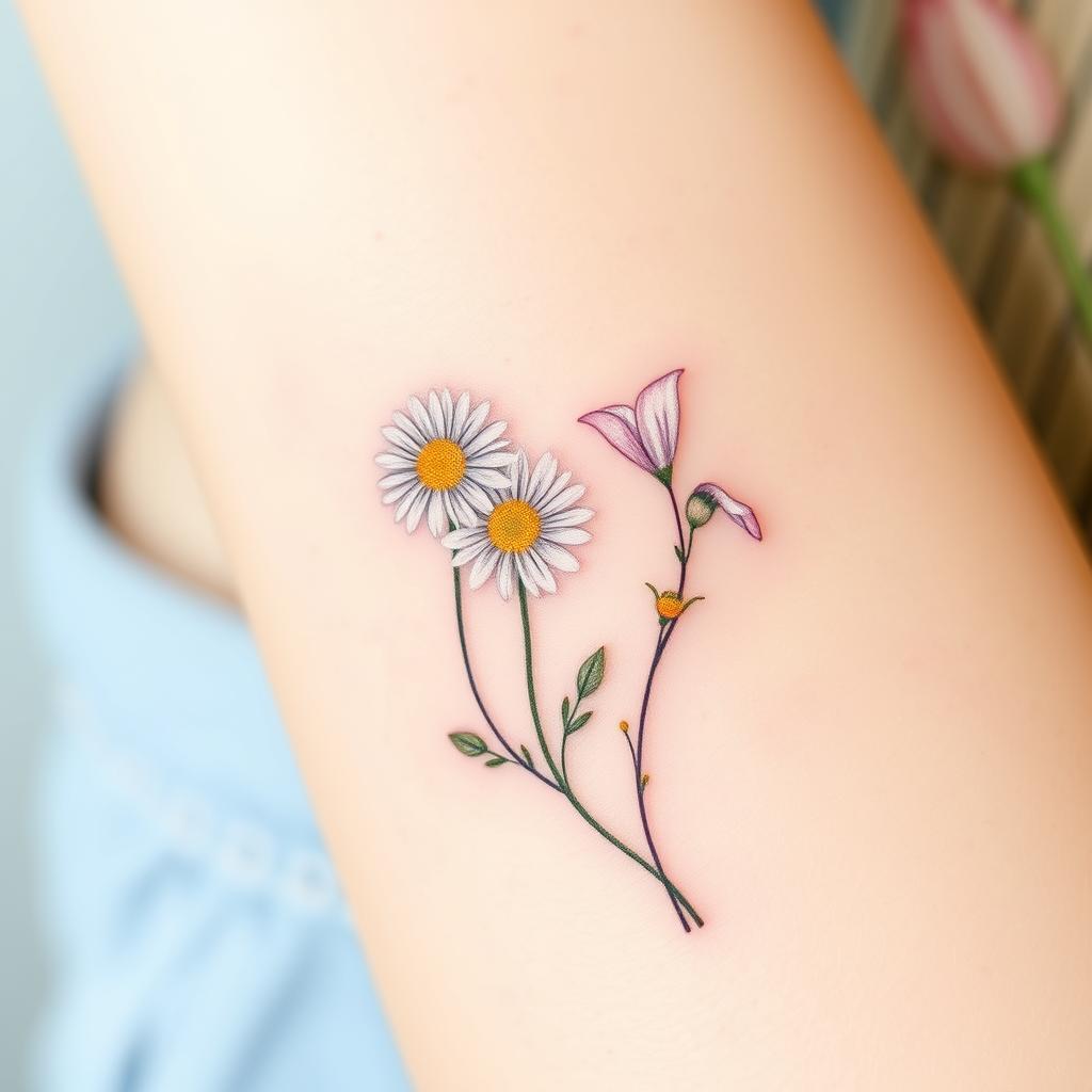 Small groups of tiny daisies are another simple tattoo idea. They fit well on small parts of your body, giving a soft, playful look. They celebrate the April birth flower’s natural beauty.