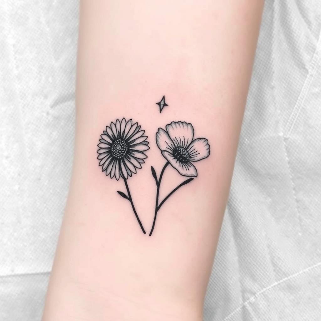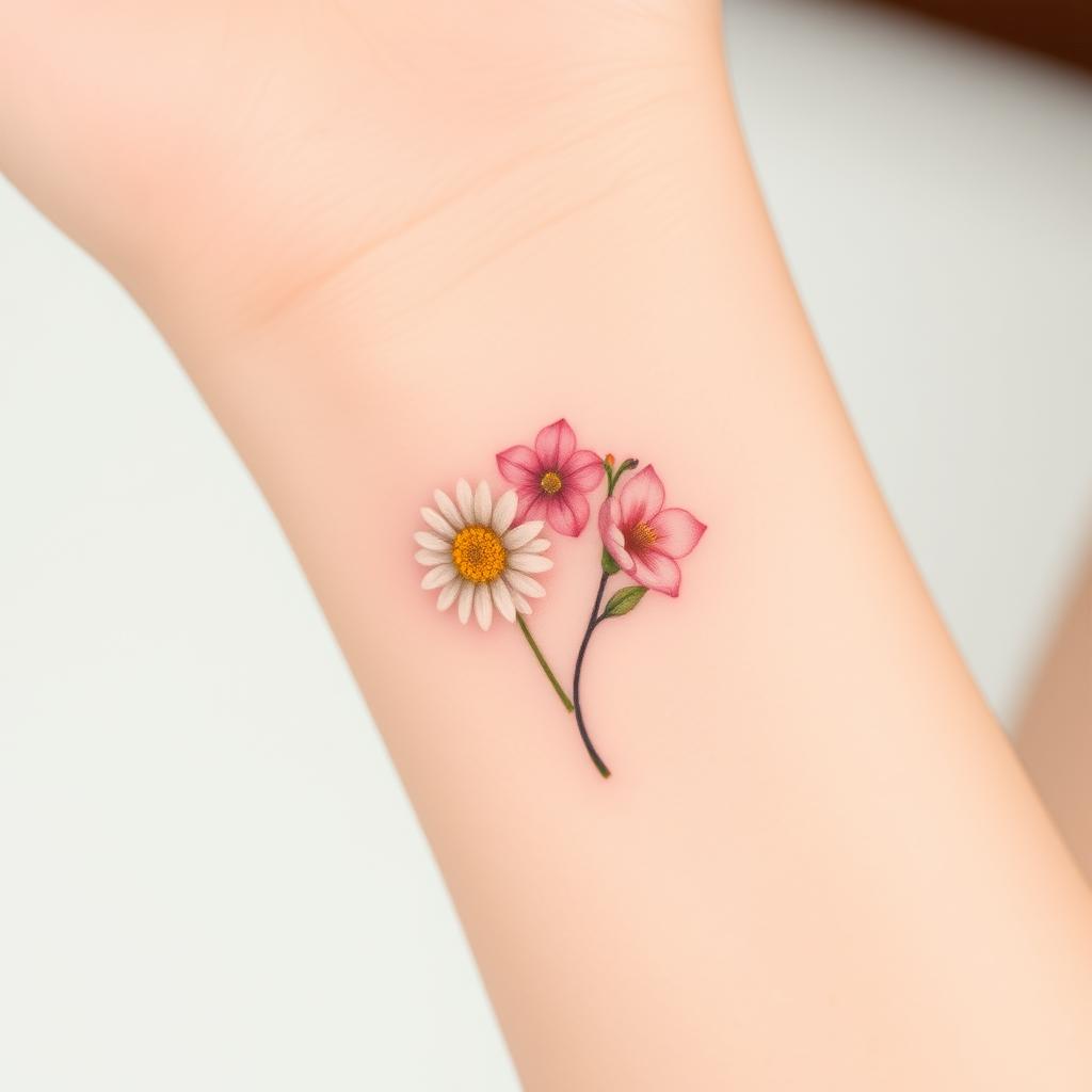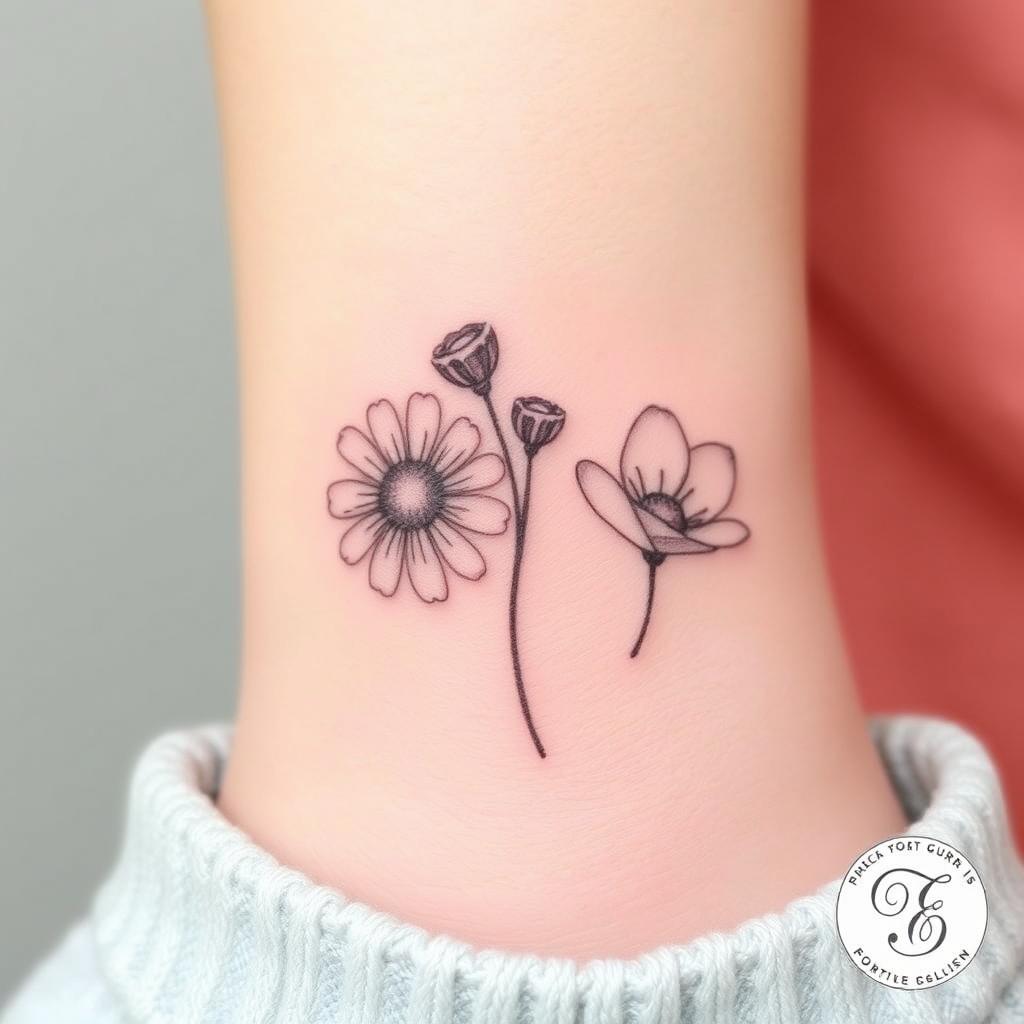 Minimalist birth flower tattoos are now a big hit for showing off personal style in a simple way. Daisies, being the April birth flower, are great for those who want clean, elegant body art. This art is simple yet powerful.