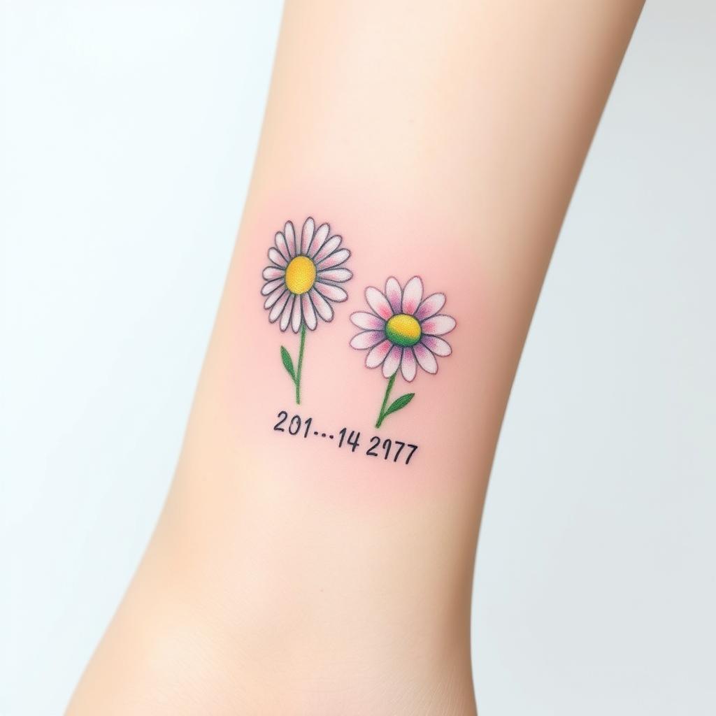 Adding important dates to your tattoo makes it even more personal. Use small script numbers or simple date designs with daisies or sweet peas. This tattoo remembers key moments in your life.