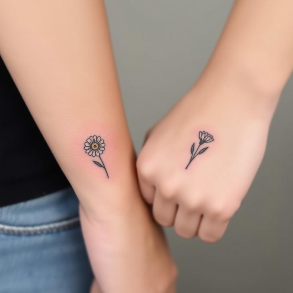 Matching April Birth Flower Tattoos for Couples and Friends