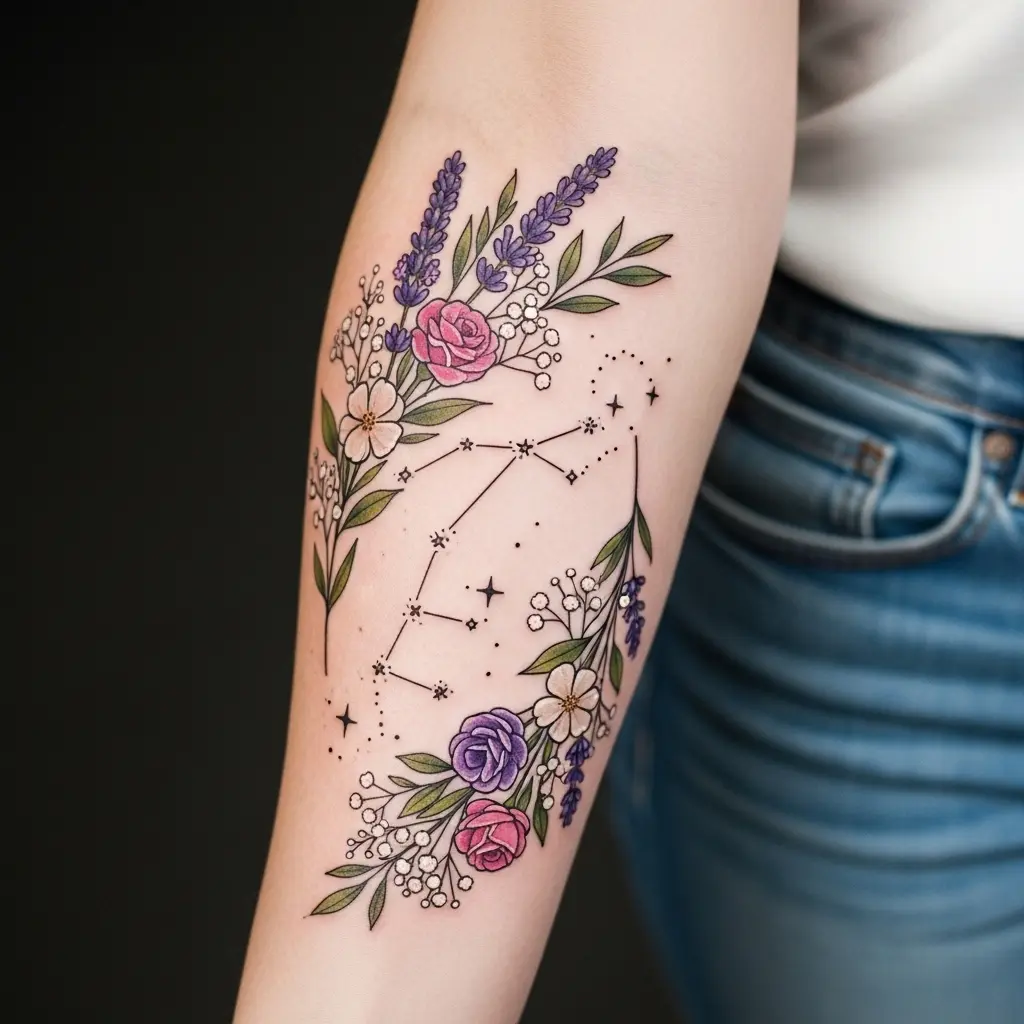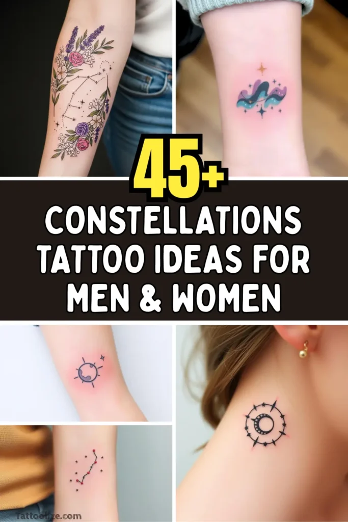 Small constellation tattoos show that big art isn’t needed. They celebrate your star connection, journey, or zodiac sign in a subtle way.