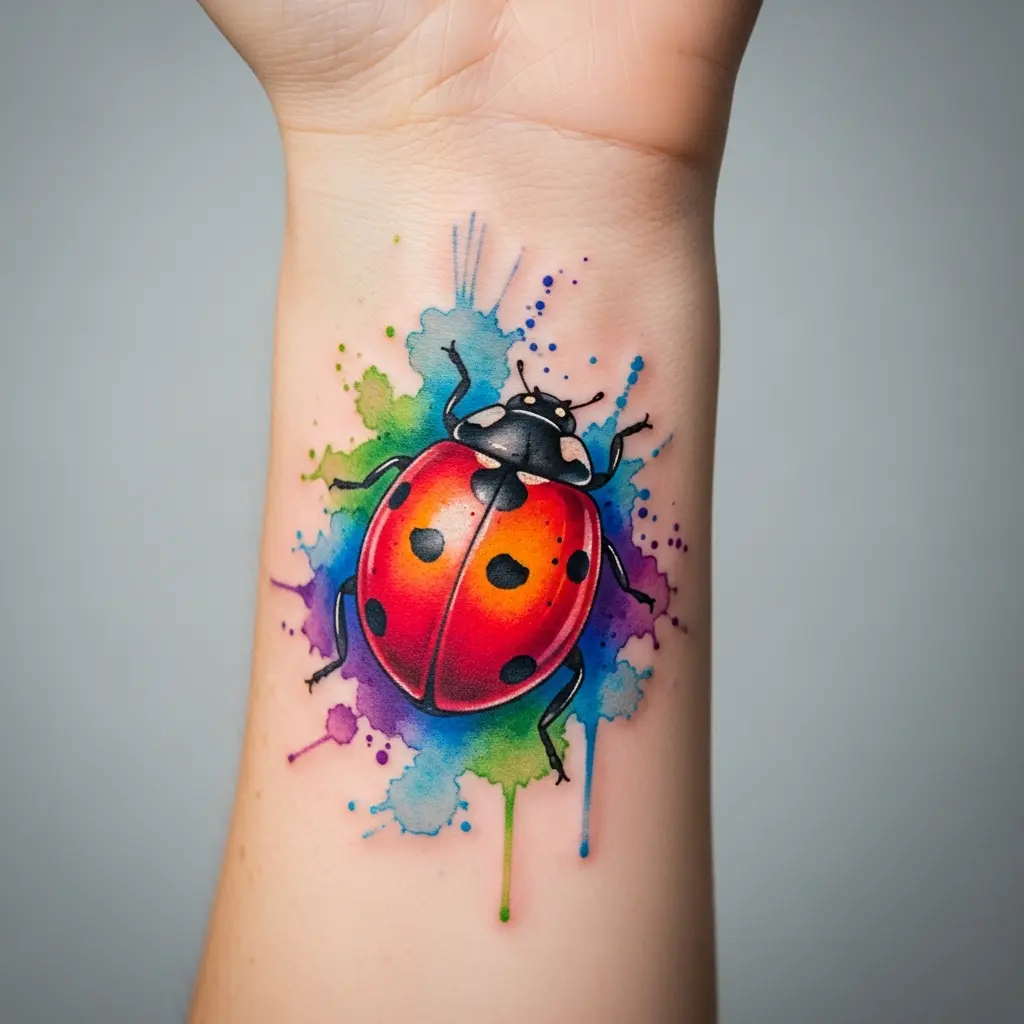 Watercolor ladybug tattoos are loved for their soft, blended look. They have delicate, dreamy designs that make the ladybug seem whimsical.