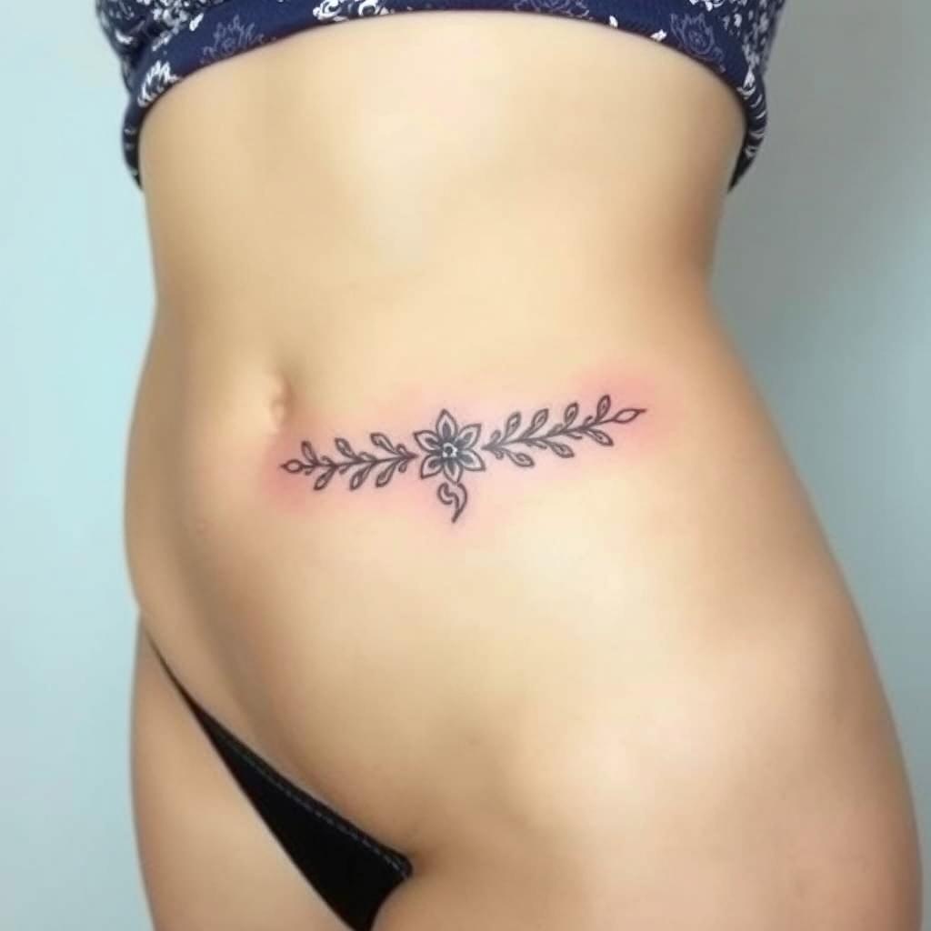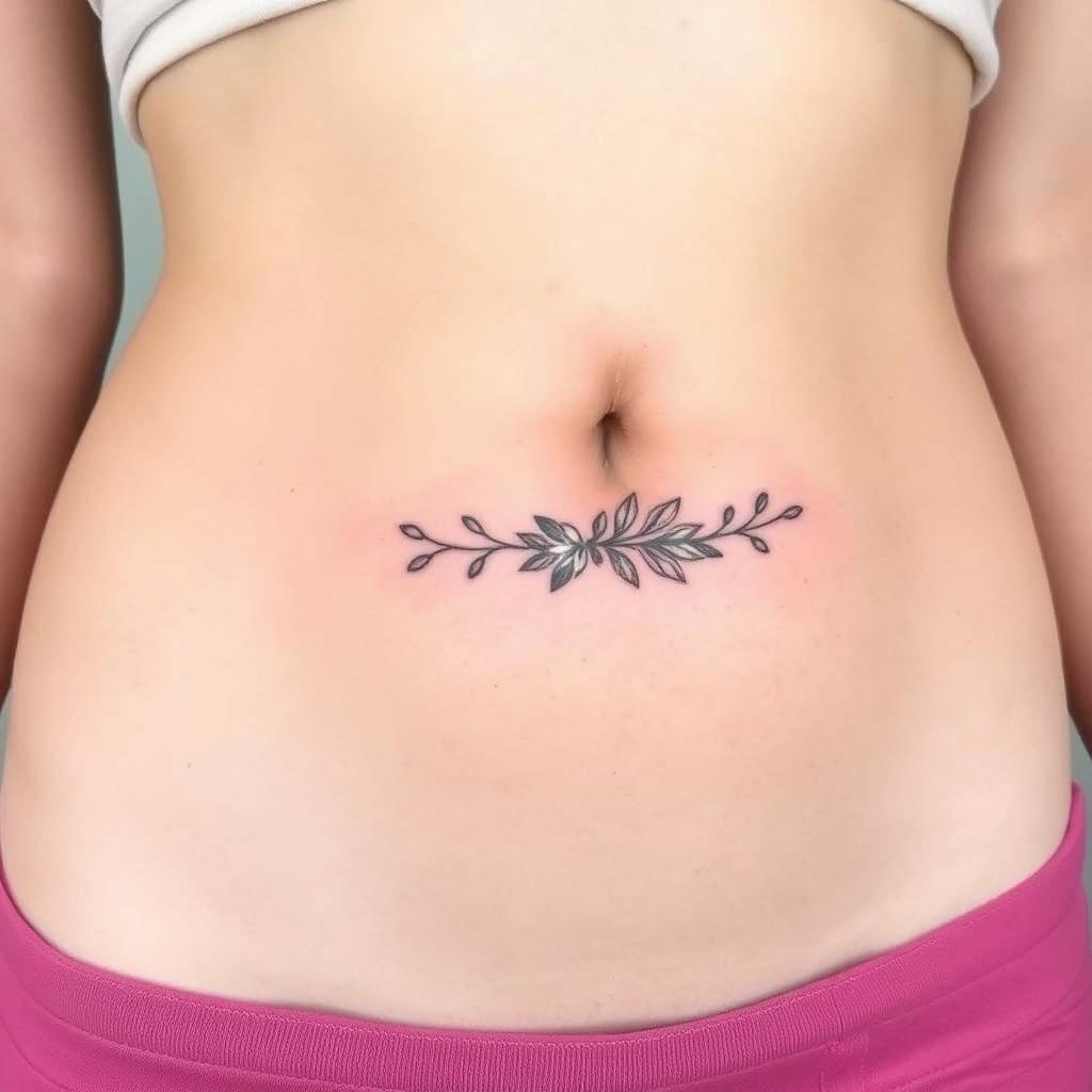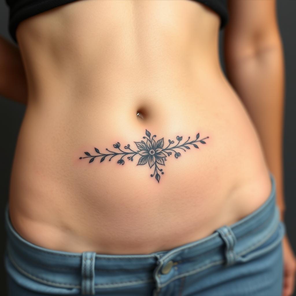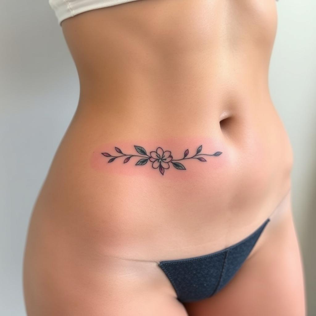 Floral or black-and-white tattoos are popular for lower abdominal scars. Try temporary tattoos to see what you like before getting a permanent one.