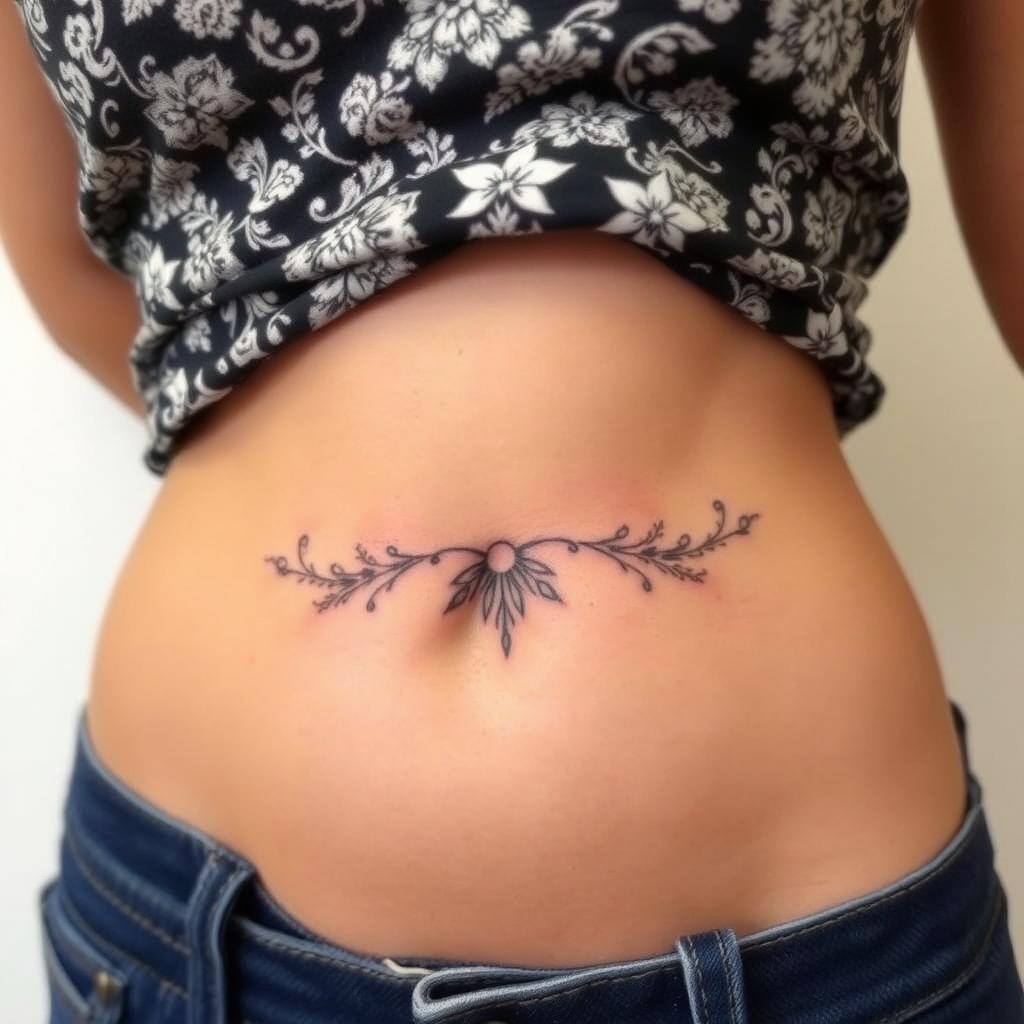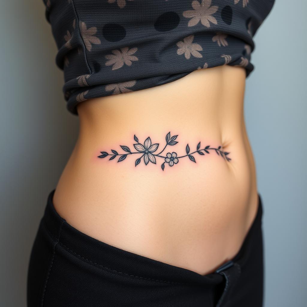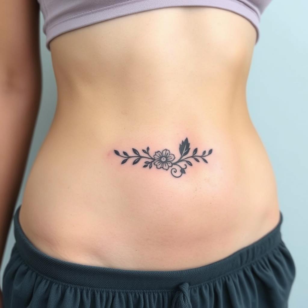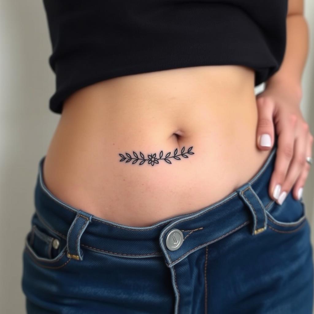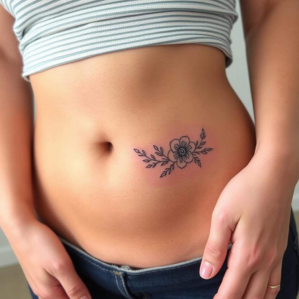 Tummy tuck scars are usually low on the belly. Designs that follow this line, like low-stomach flowers or waistbands, hide the scar well. They also respect your body’s shape.