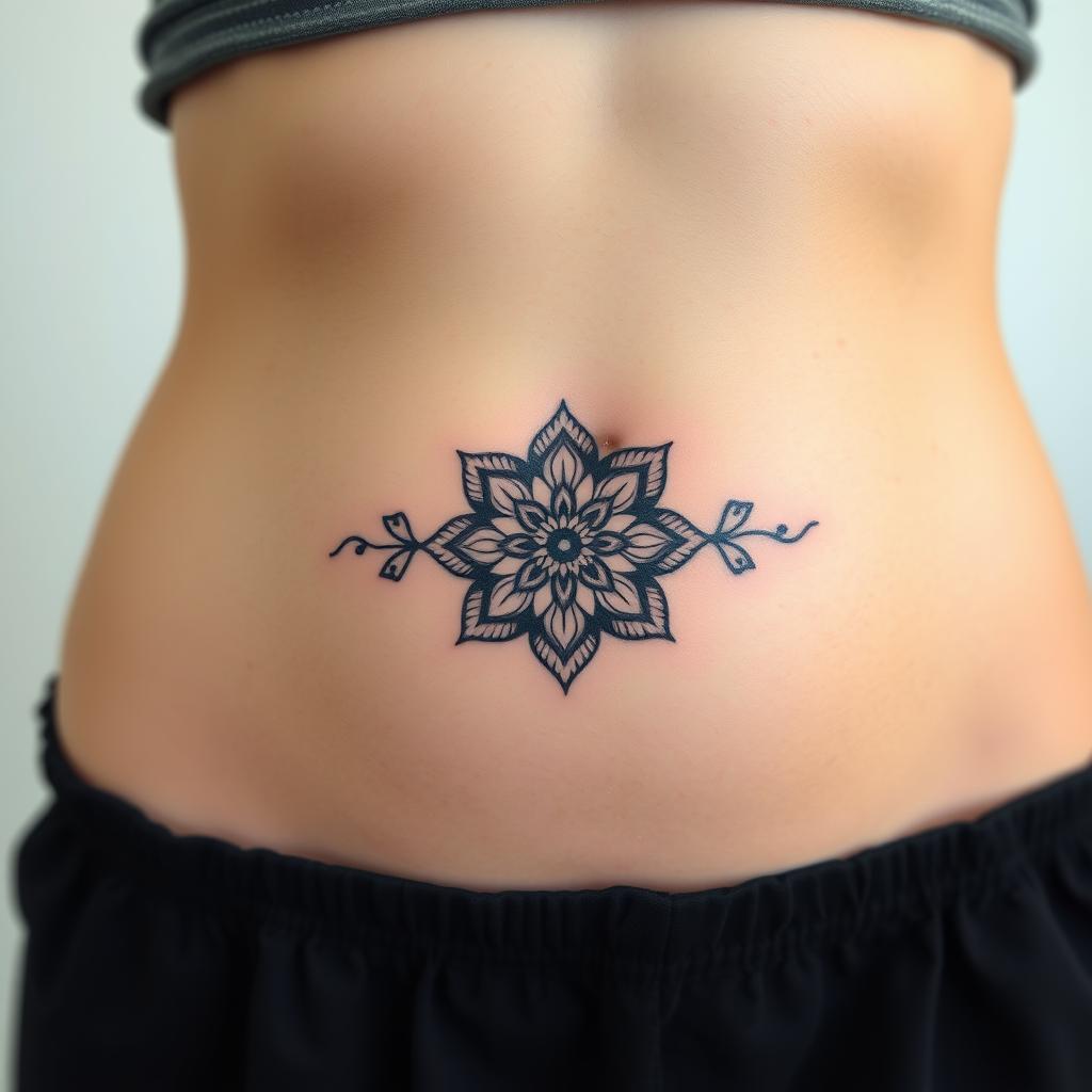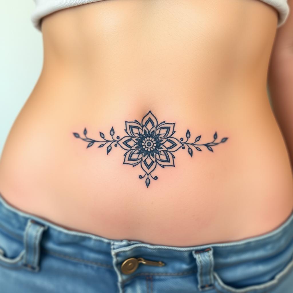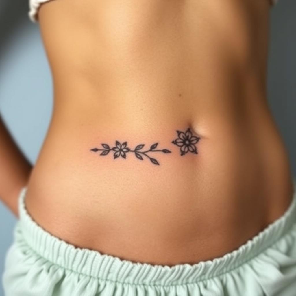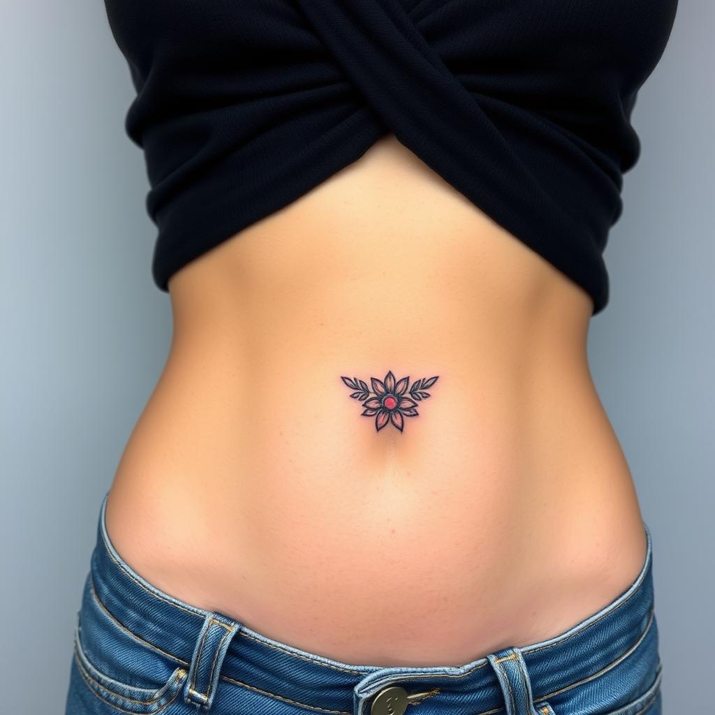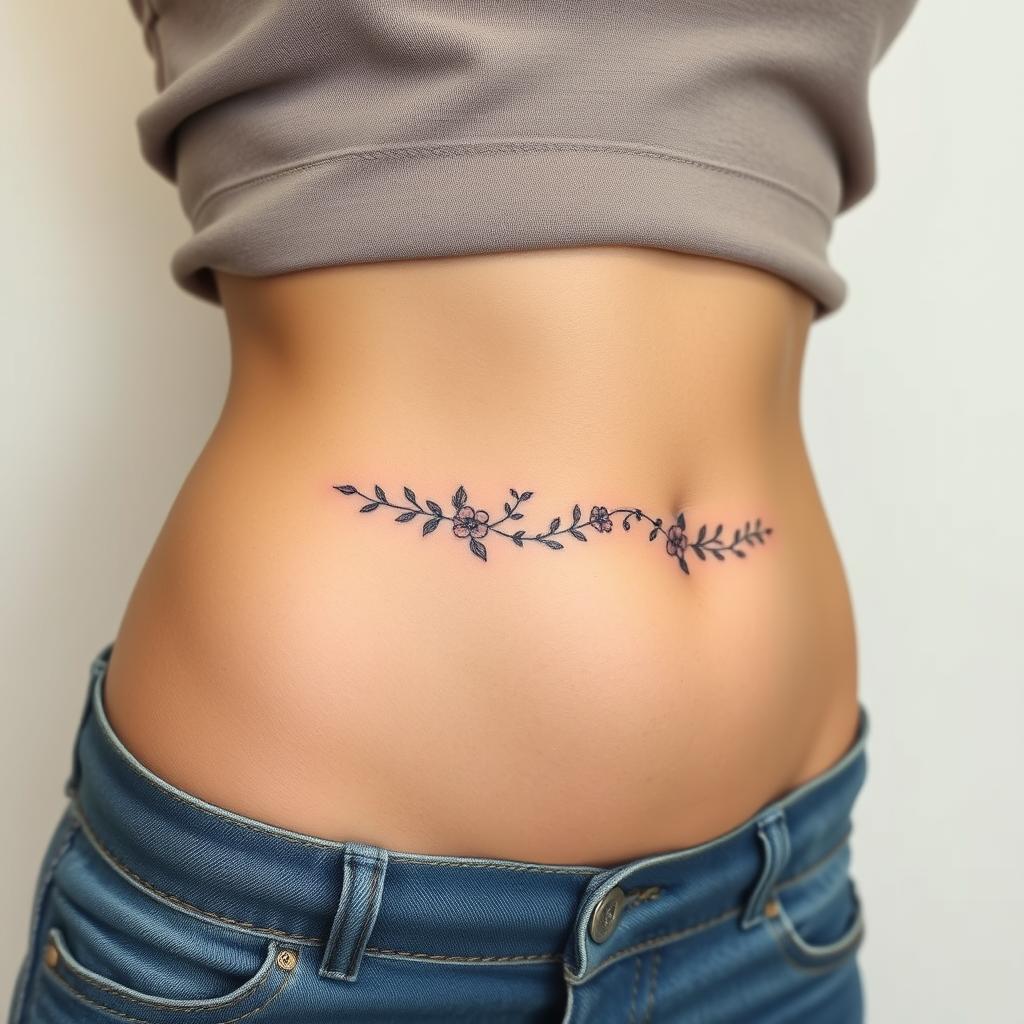 Tummy tuck scars are usually low on the belly. Designs that follow this line, like low-stomach flowers or waistbands, hide the scar well. They also respect your body’s shape.